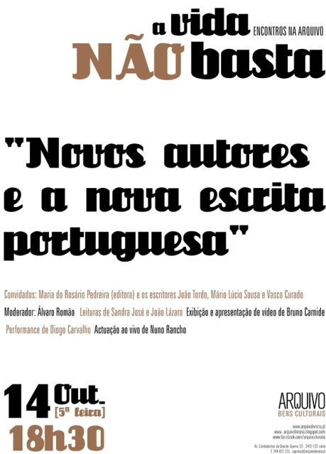 Hoje, em Leiria, pelas 18.30, na Livraria Arquivo, João Tordo, Vasco Luís Curado, Mário Lúcio Sousa… e eu (a editora dos três) vamos participar numa conversa, animada com música e boa companhia. Se estiver por ali, apareça!