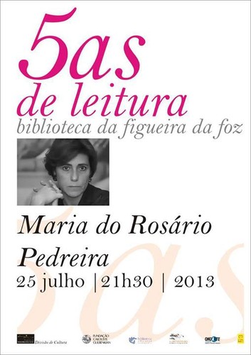Já aqui falei muitas vezes das Quintas de Leitura – um espectáculo magnífico organizado por João Gesta no Porto, no Teatro do Campo Alegre, que esgota assim que os bilhetes são postos à venda e conta com a colaboração de um poeta, de diseurs, de artistas e músicos. Mas estas, como descobri no ano passado, não são as únicas Quintas de Leitura que existem, pois outras há na Figueira da Foz todos os meses, que ocorrem depois do jantar e têm um autor por convidado na Biblioteca Municipal da cidade à beira-mar. Depois de algumas alterações forçadas mas aconselháveis (a primeira quinta que me marcaram acabou por revelar-se a véspera de um feriado e, portanto, o público iria provavelmente de fim-de-semana; e, na segunda, havia à mesma hora um espectáculo de bailado que era um sério concorrente), hoje estarei nas 5.as de leitura da Figueira da Foz, para falar da minha poesia a quem queira ouvir e responder a perguntas do público. Se estiver por lá, apareça.