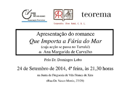 No ano passado, entre outras novidades, tive o prazer que publicar o primeiro romance de Ana Margarida de Carvalho, jornalista da Visão que se atreveu à ficção e logo se viu que a devia ter escrito toda a vida, nem que fosse apenas dentro de si. Essa obra de estreia tinha como título um verso de uma canção de Zeca Afonso – Que Importa a Fúria do Mar – e recebeu, como merecia, encómios da crítica e dos leitores, sendo reeditada pouco depois, o que é um feito raro tratando-se do livro de uma autora até então desconhecida. O enredo dividia-se por dois tempos distintos – o da ditadura, com um protagonista enviado para o Tarrafal, e o presente, com uma jornalista que entrevista esse homem, agora velho, para um programa de televisão; e muito se poderia dizer desse encontro, mas nada substitui a leitura do romance. Em todo o caso, vai ser muito bom ouvir falar dele logo à noite, na Junta de Freguesia de Vila Franca de Xira, numa sessão organizada por António Redol, filho do escritor Alves Redol, e apadrinhada pelo Museu do Neo-Realismo, na qual contaremos com a presença de Domingos Lobo a apresentar o livro. Se estiver por perto, não deixe de aparecer. Senão, leia o livro.